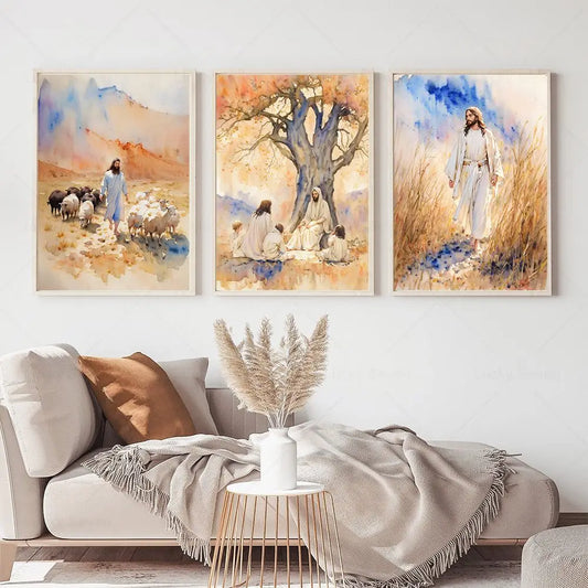 Watercolour Jesus Portrait Christian God Wall Art Christ Poster Prints Canvas Painting Wall Pictures for Living Room Home Decor